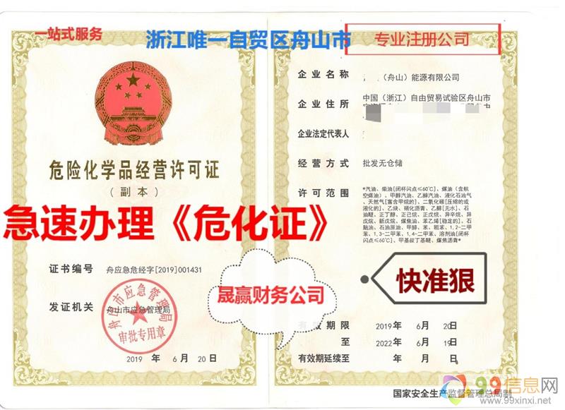 六、目前的舟山自贸区正在招商引资吸引企业入驻,优惠的返税政策,企业每年少缴税,多返税我们为客户办理油品公司可以不需要法人的到场,办理(危险化学品经营许可证及营业执照)只需要15个工作日,我们快速,高效,安全,专业9_9_x_i_n_x_i_n_e_t。 为您省心省力省时,一切交给我们,轻松当老板9 9 信 息 网。